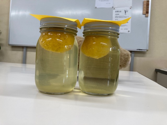 柚子をマナウォーターと水道水につけて