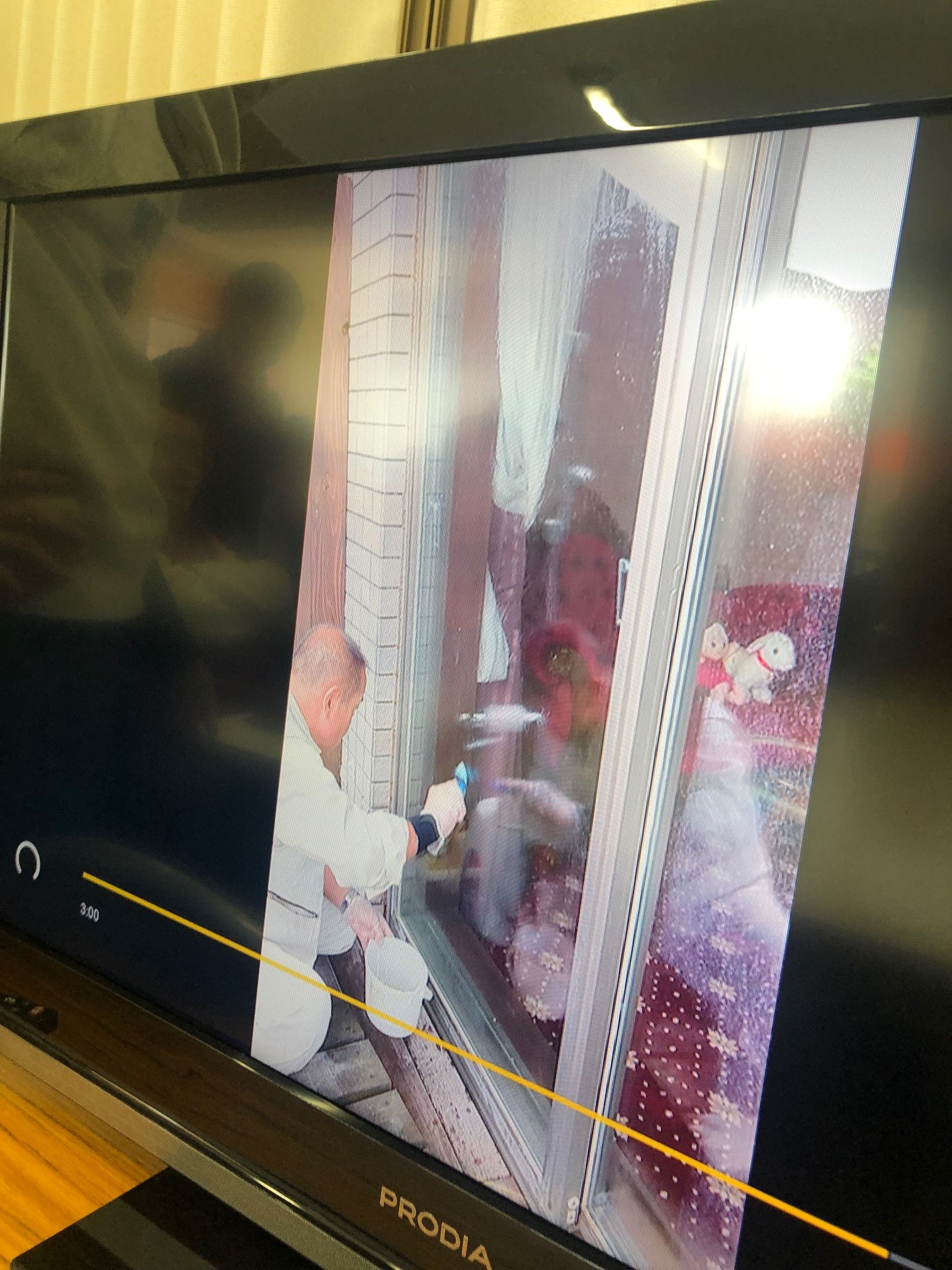 お話のあとテレビに清掃の画面を映しました.