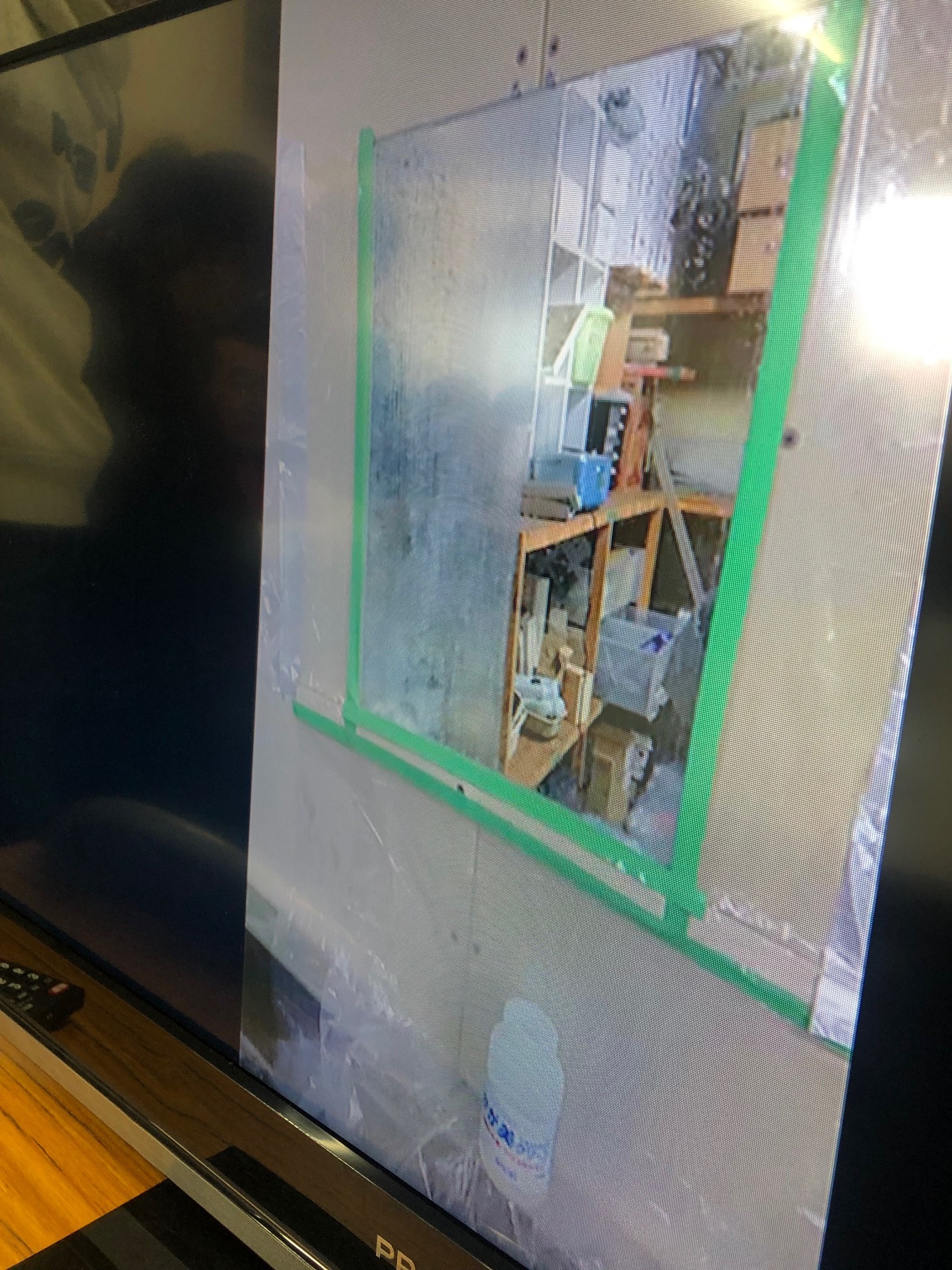 温泉で汚れたガラス。普通は研磨剤しか取れない曇りがテネモス仕様の洗剤で塗るだけで取れる。