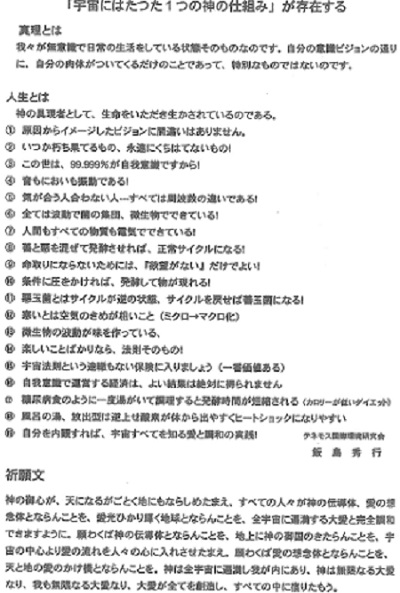 Sさん 飯島さんのお話はわかりやすい。知花さんも長く聞いたがそれよりもわかりやすい。お話をコピーして他の方に配る。またコピーして他の方に配ってあげてください。自分の幸せが家族に回りに広がる。